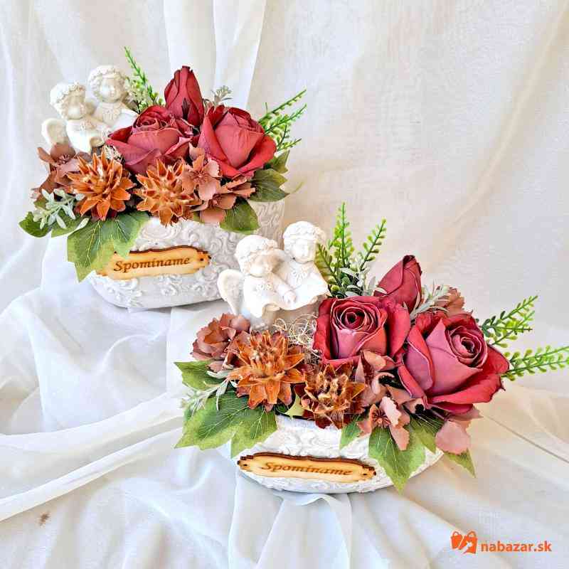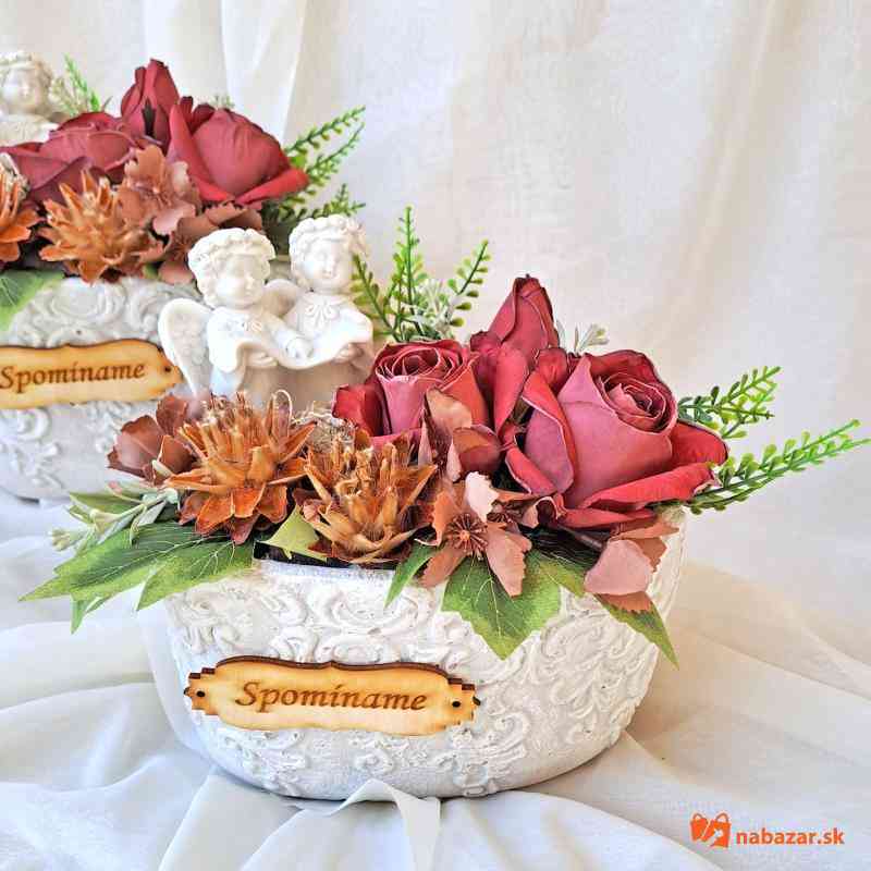 Jemne dozdobená umelými kvietkami a anjelikmi.