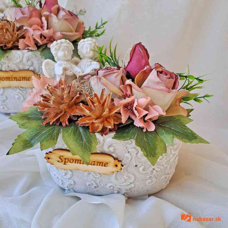 Jemne dozdobená umelými kvietkami a anjelikmi.