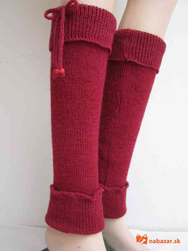 Návleky jsou upleteny pružným vzorem, jsou poddajné. Nahoře je šňůrka na stažení a zároveň návleky zdobí. Na konci šňůrky jsou korálky (lakované dřevěné nebo plastové). Mašlička může být vpředu nebo po straně. Návleky mají šev.