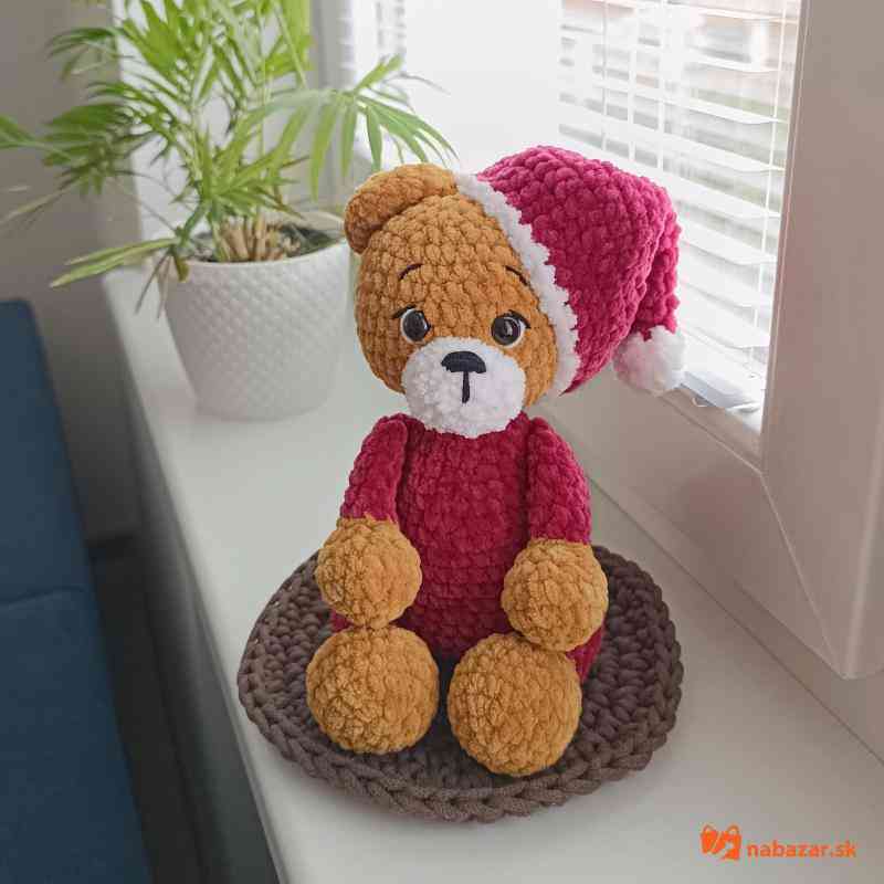 Háčkovaný medvedík v ružovej farbe s čiapkou. Vyrobený z priadze Himalaya Dolphin baby a Alize Softy plus. Vyplnený dutým vláknom a opatrený bezpečnostnými očkami.