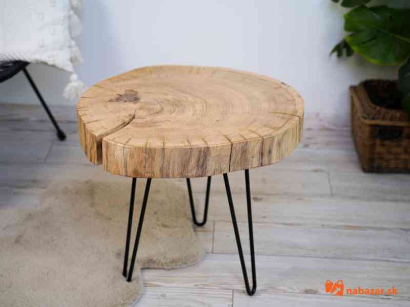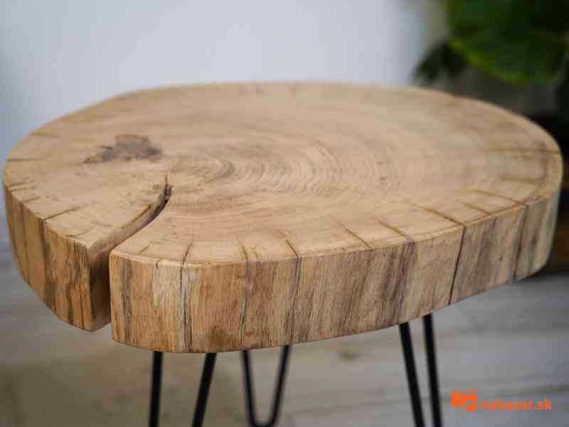 Oválny stolík je kompletne z <strong>prírodného dubového dreva</strong> a má <strong>55 cm</strong> vo svojej najväčšej dĺžke. Stolík má krásne pravidelné letokruhy, ktoré vytvorila sama príroda. <strong>O finálnu úpravu dreva sa postaral špeciálny bezfarebný lak. Stolík je na kovových nožičkách.</strong>
