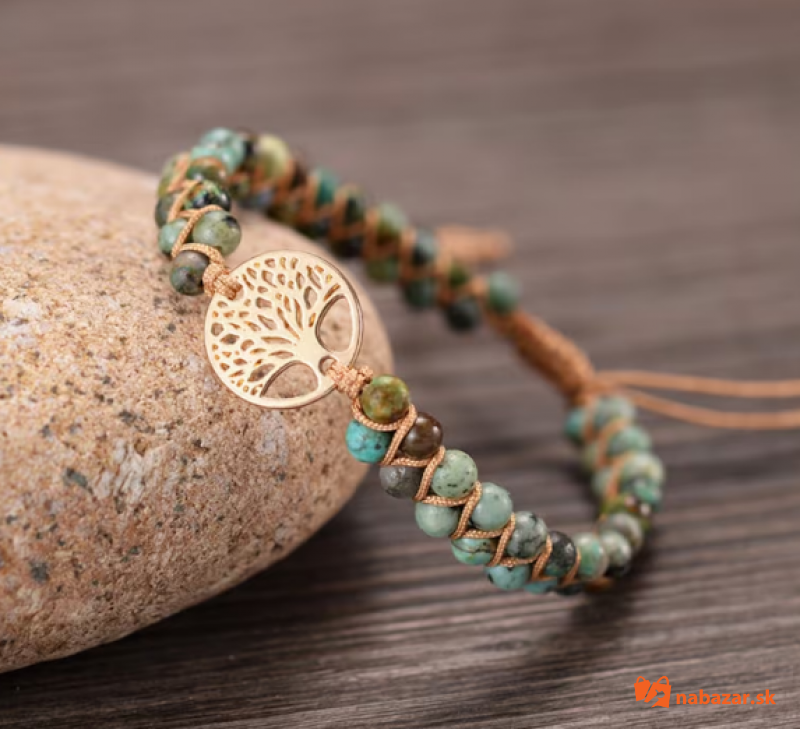 Náramok z farebných goráliek, ozdobná šňúrka a prívesok stromu. Veľkosť 16,5 cm