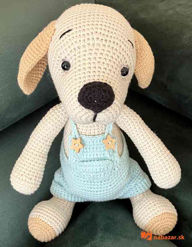 Háčkovaný psík ,materiál 55% bavlna 45% akryl, výplň duté vlákno,bezpečnostné oči.