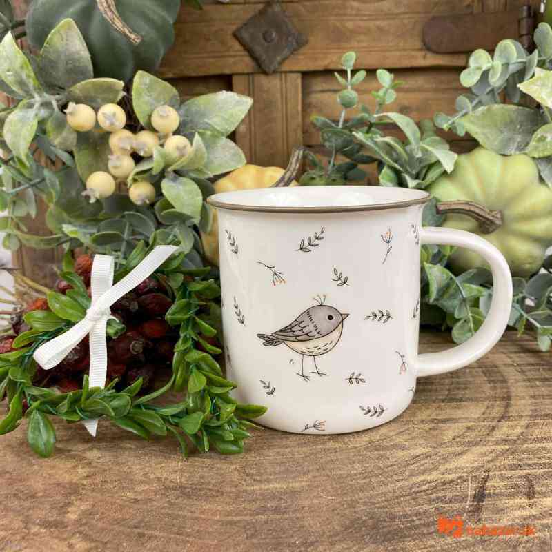 Porcelánový hrnček, motív vtáčik. 8,5 x 10cm