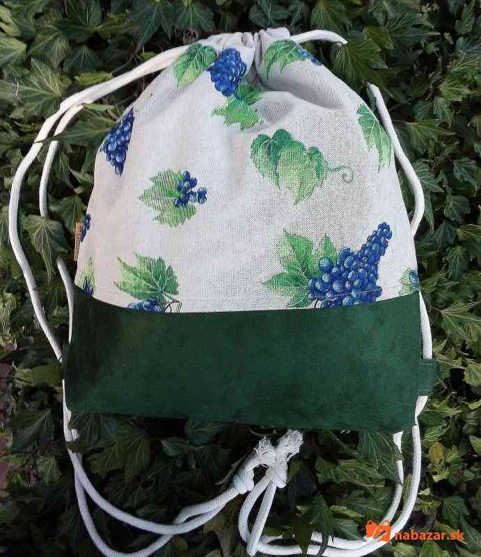 Batoh je zhotovený z režno - bavlneného plátna v kombinácií s eko imitáciou semišovej kože. Je podšitý bavlnenou látkou, má dve vnútorné vrecká a karabínku na kľúče.