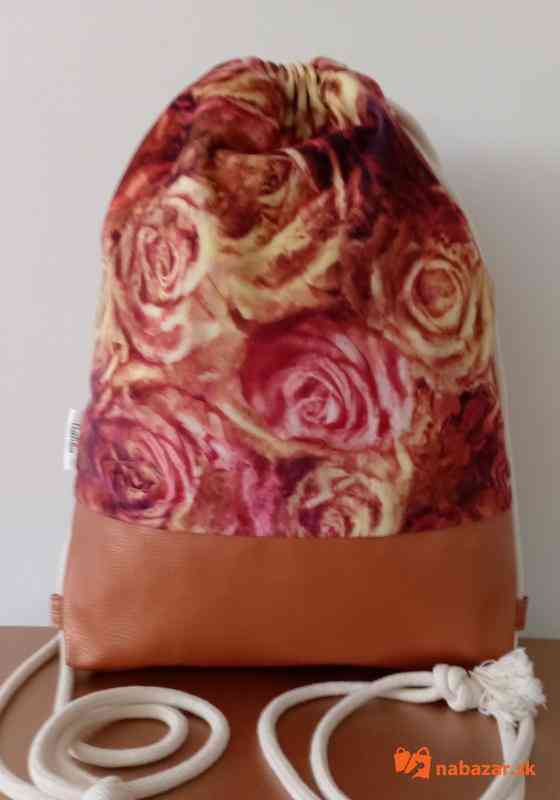 Batoh je zhotovený zo zamatu v kombinácii s eko kožou. Je podšitý bavlnenou látkou, má dve vnútorné vrecká a samozrejme nesmie chýbať praktická karabínka na kľúče.