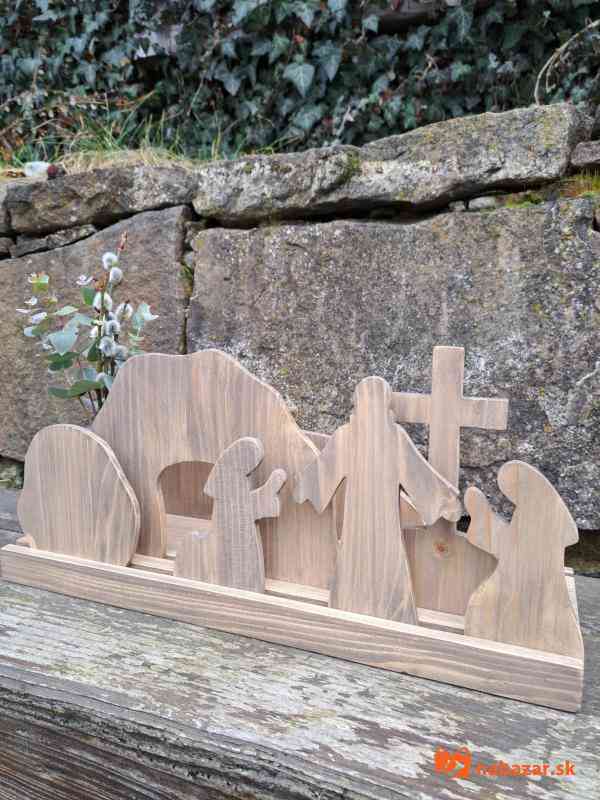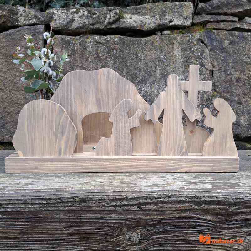 Stolová dekorácia so scénou vzkriesenia Ježiša Krista.