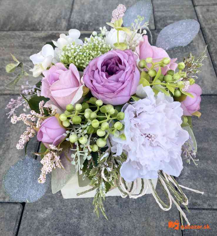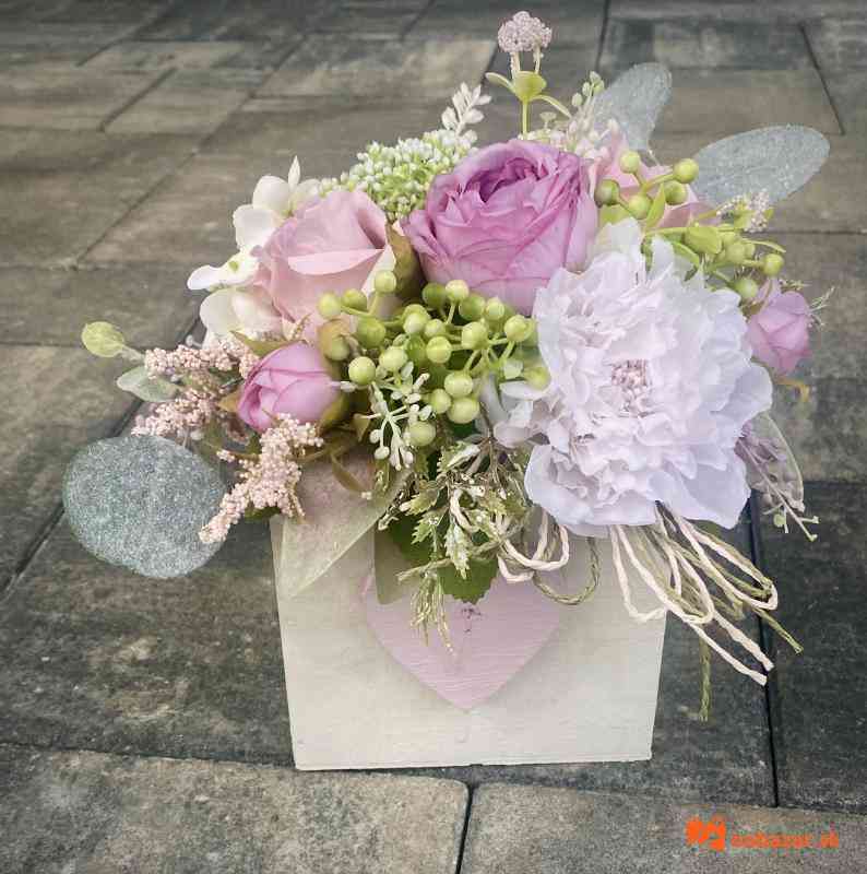 Drevená krabička dekorovaná parfumovanými látkovými kvetmi