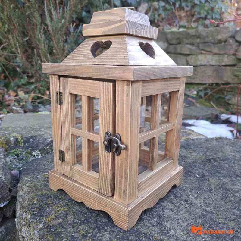 Lampáš vyrobený z dreva s drevenou strieškou a otvárateľnými dvierkami. Ručne vyrezávané dekoračné prvky, ručne maľovaný- olejovaný. Olejovaním krásne vynikne nádherná štruktúra dreva. Vhodný ako dekorácia pred Váš dom alebo na spríjemnenie Vášho domova. Lampáše a svietniky navodia príjemnú atmosféru vo vašom domove počas letných a zimných večerov.