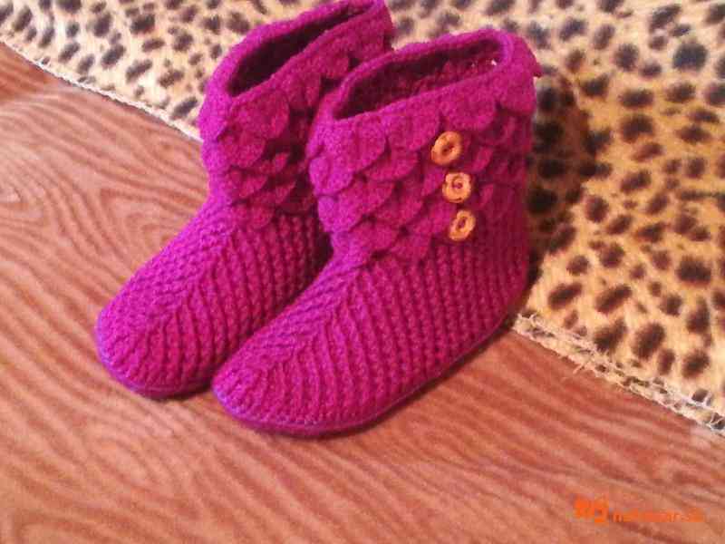 Háčkované papučky pre domáce pohodlie :) ... s ponožkami aj bez ponožiek dobre držia na nohe, papučky sa prispôsobia Sú mäkučké, teplučké :) Vhodné aj ako milý darček pre blízku osôbku :)