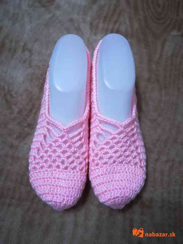 Háčkované papučky pre domáce pohodlie :) ... s ponožkami aj bez ponožiek dobre držia na nohe, papučky sa prispôsobia Sú mäkučké, teplučké :) Vhodné aj ako milý darček pre blízku osôbku :)