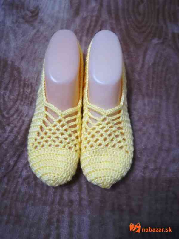 Háčkované papučky pre domáce pohodlie :) ... s ponožkami aj bez ponožiek dobre držia na nohe, papučky sa prispôsobia Sú mäkučké, teplučké :) Vhodné aj ako milý darček pre blízku osôbku :)