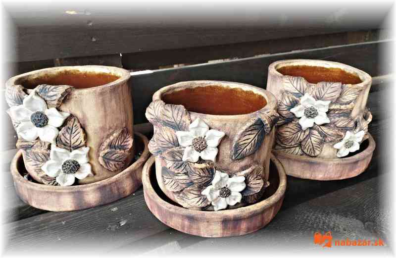 Květináč s podmiskou je ručně modelovaný z šamotové hlíny pálený na vysoko - mrazuvzdorný.
