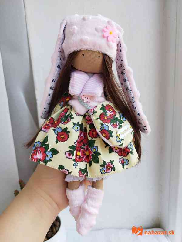 Bábika v podobe Zajac s tmavými vlasmi Hračka pre dievčatko handmade dolls texti
