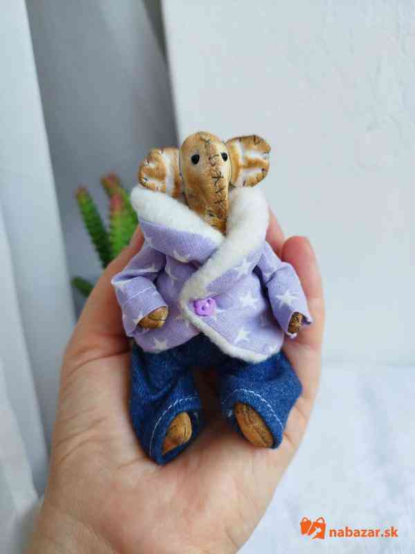 Tento hračkársky slon je ušitý z látky. Samotný slon bol umelo starnutý, aby vyzeral ako vintage zberateľská hračka.