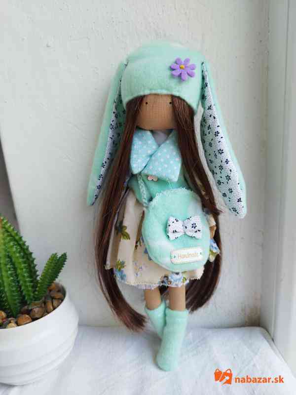 Bábika Zajac s dlhé vlasmi Hračka pre dievča handmade dolls textile