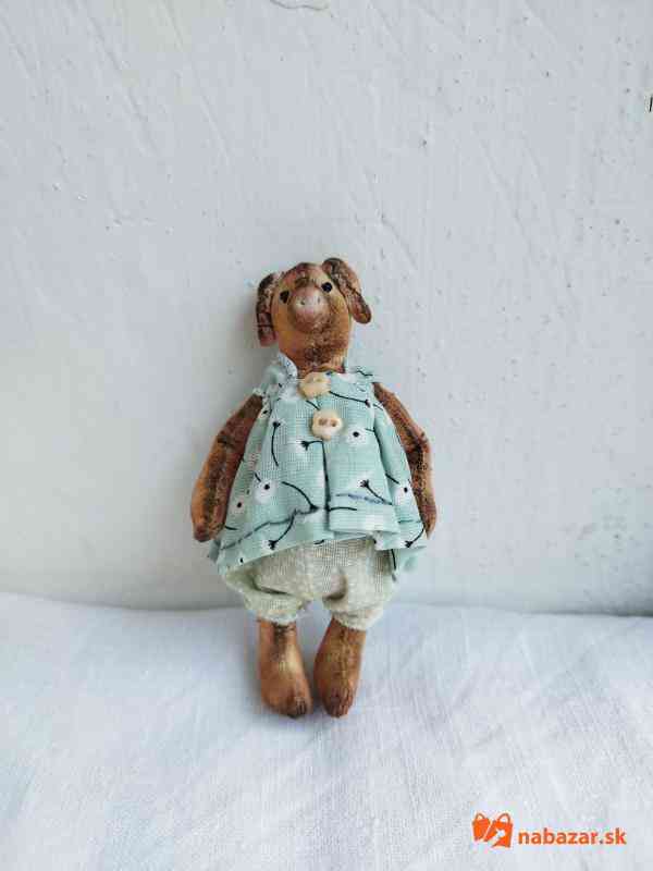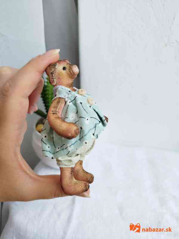 Hračka prasiatka je vyrobená z látky. Samotné prasiatko som umelo zostarol, aby vyzeralo ako vintage zberateľská hračka.