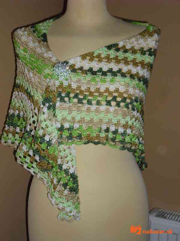 Háčkovaná šatka je vyrobená z kvalitnej jemnej akrylovej priadze. Oživí každý kabát alebo top.