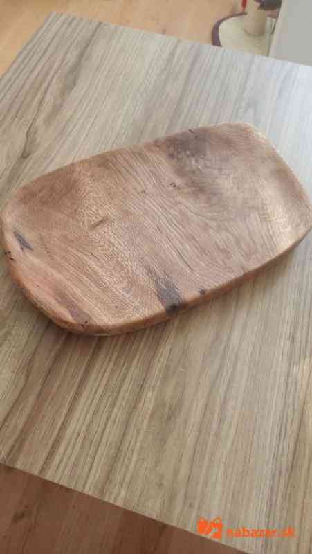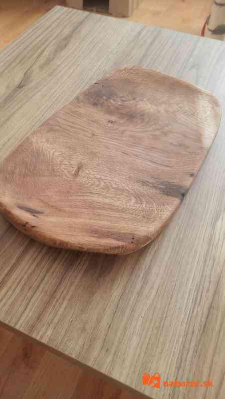 Plytký drevený tanier, dubový ošetrený pripravený na grilovačku. Využijete na pokrmy na chalupe či na grilovačku, zeleninu , alebo halušky.