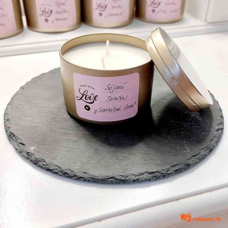 Ručne odlievaná sójová sviečka s vôňou Santaloveho dreva.