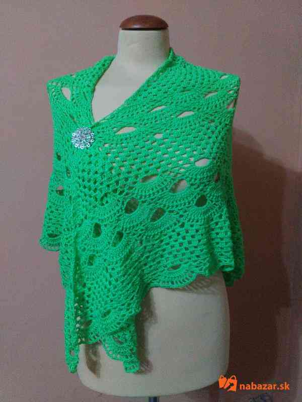 Háčkovaná šatka je vyrobená z kvalitnej jemnej akrylovej priadze. Oživí každý kabát alebo top.