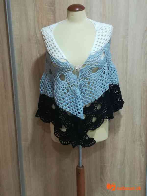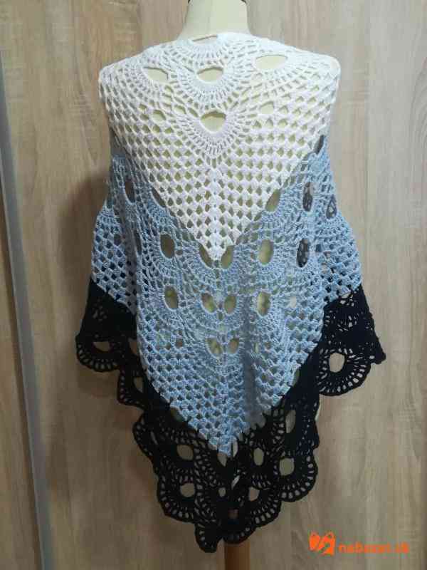 Háčkovaná šatka je vyrobená z kvalitnej jemnej akrylovej priadze. Oživí každý kabát alebo top.