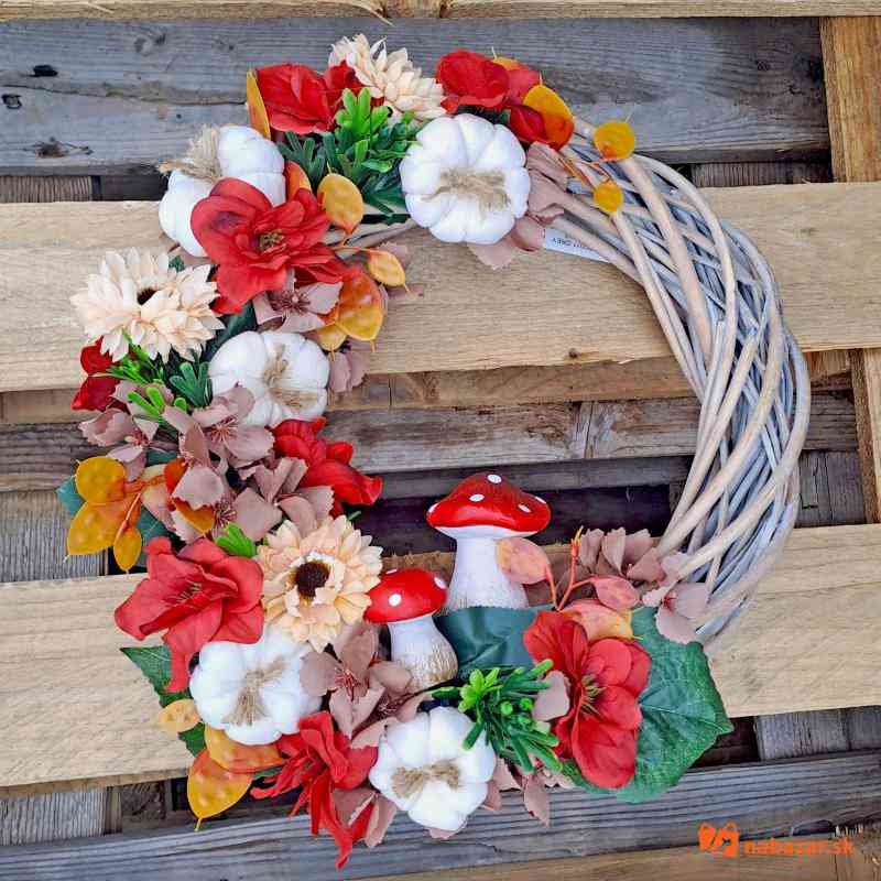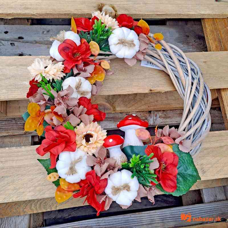 Jesenný venček na dvere s hríbimi a cesnakom č. 33