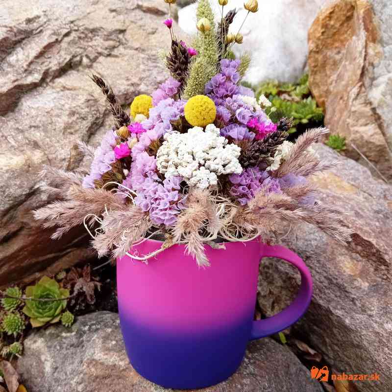 Keramická pestrofarebná šálka so slamienkami.